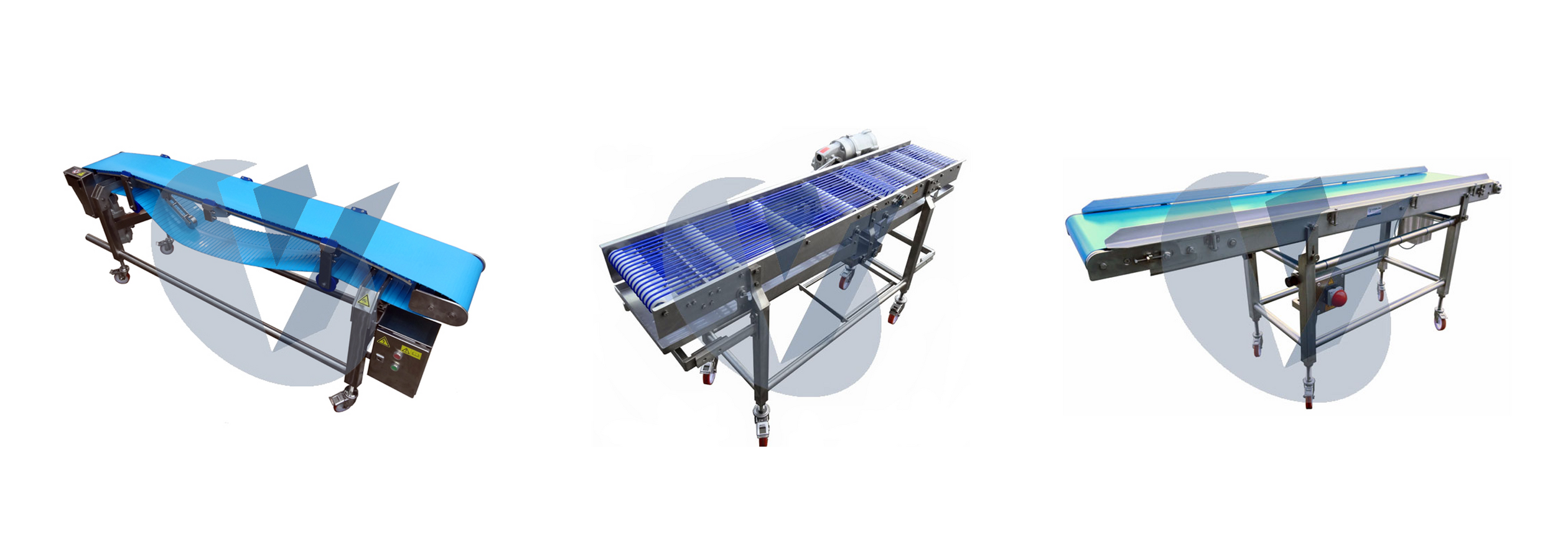 Förderanlagen für die lebensmittelverarbeitende Industrie, welche höchste Hygieneanforderungen mit reinigungsoptimierten Konstruktionen (nach Verordnung EU 1935/2004) erfüllen.